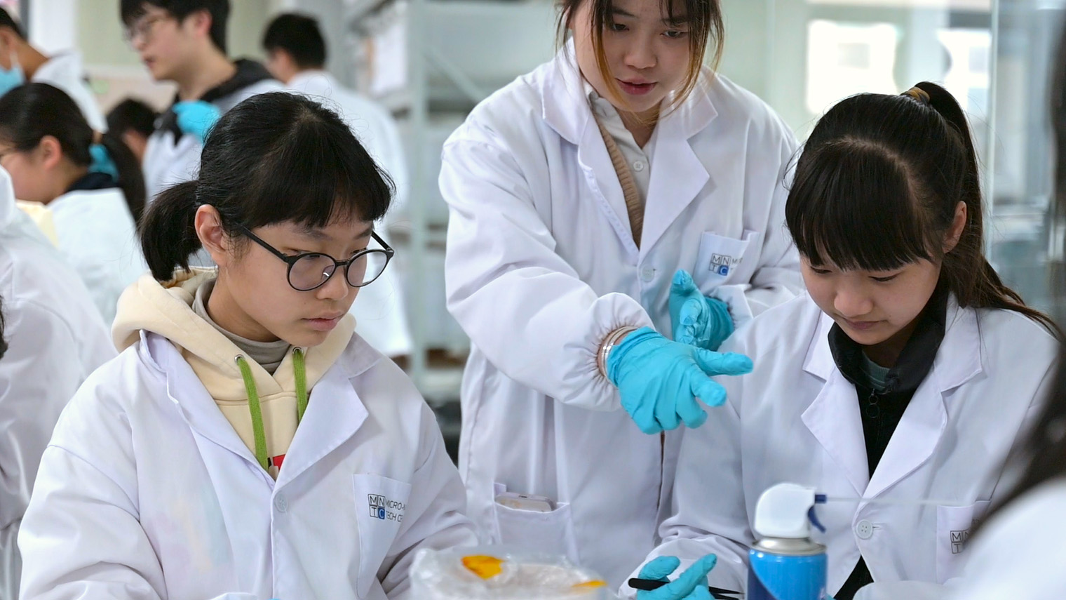数字微流控技术,作为一种前沿的科学技术,近年来在生物医学、环境监测、药物研发等领域展现出巨大的应用潜力。为了让学生了解这一技术,培养他们对科学的兴趣, 微纳中心主任赵蒙研究员带领工程师团队,为此次活动进行现场讲解及操作演示。